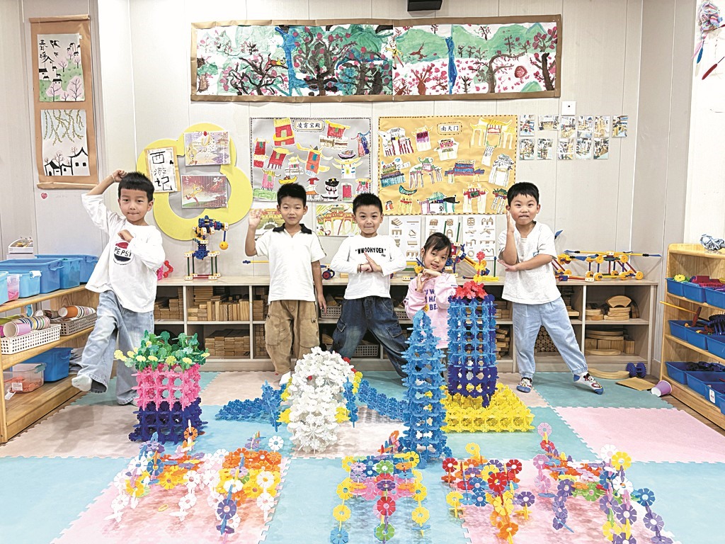 近日,日照市岚山区实验幼儿园开展了科技主题搭建活动。幼儿运用雪花片等材料,分组合作完成了“火箭”“天宫一号空间站”等模型搭建。活动寓教于乐,提高了幼儿的动手能力,激发了他们对航天科技的兴趣。