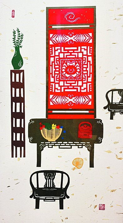 面对“新剪纸”,我决心做自己的艺术家。我亲手用树皮造纸,尝试新材料,探索多元化表现形式。深入钻研染色技艺,将单色晕染、多色碰撞、肌理叠加、铁锈侵蚀、烧灼轮廓等技法融入我的创作语言。我以最大的勇气将传统剪纸技艺与当代艺术语言相融合,探索当代剪纸艺术形态。
