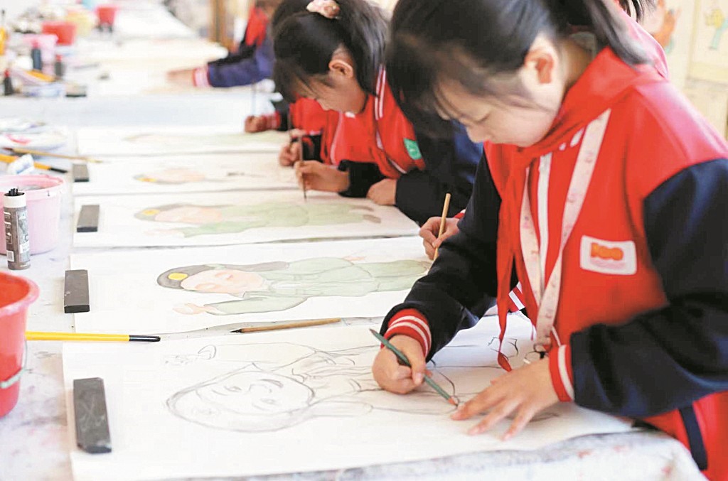 高密市姜庄镇及周边地区是高密扑灰年画的发源地。姜庄小学立足本土文化优势,以“非遗进校园”为抓手,推动中华优秀传统文化与学校教育教学深度融合,探索出一条“技艺传承+文化浸润+人格培育”的特色育人路径。