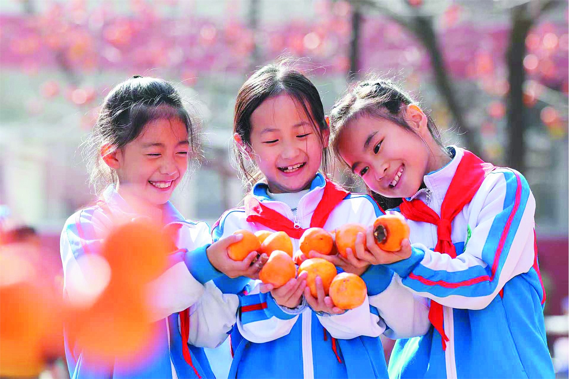 深秋时节,高密市恒涛实验小学的柿子林里挂满了红彤彤的柿子。它们犹如一盏盏小灯笼,为校园增添了一抹亮丽的色彩。每到大课间或课后延时服务时间,学生在柿子林里摘柿子、画画、嬉戏、读书,与大自然亲密接触。(李海涛)