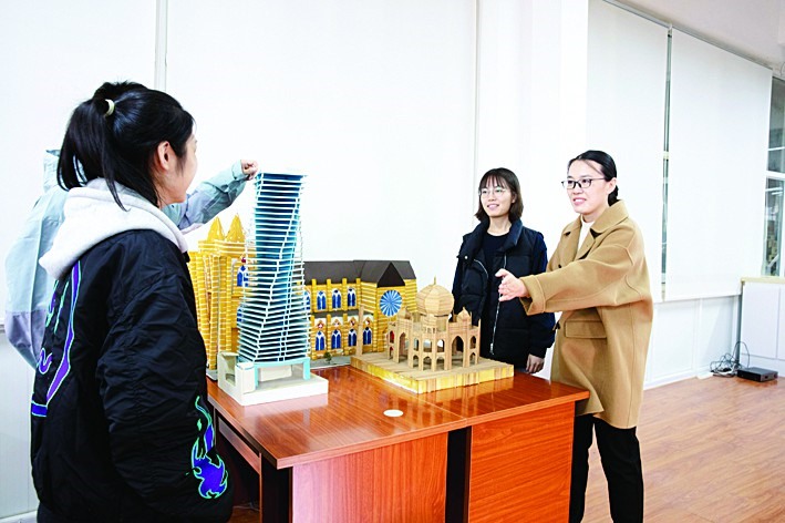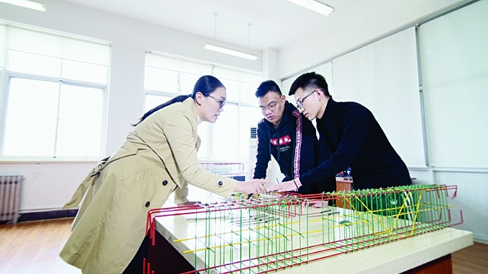谭婧婧和学生一起研究梁的构造