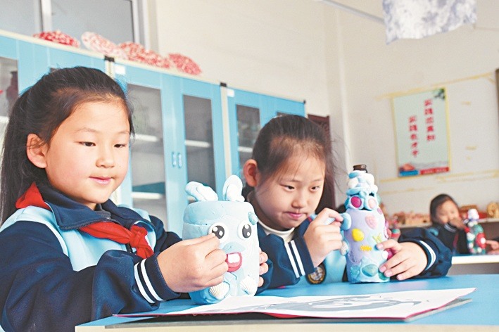 高青县唐坊学区和店小学通过开设扎染、泥塑、剪纸等多个社团,让学生了解非遗知识,培养动手实践能力,感受中华优秀传统文化的魅力。图为泥塑社团学生在进行泥塑创作。(孙传波)