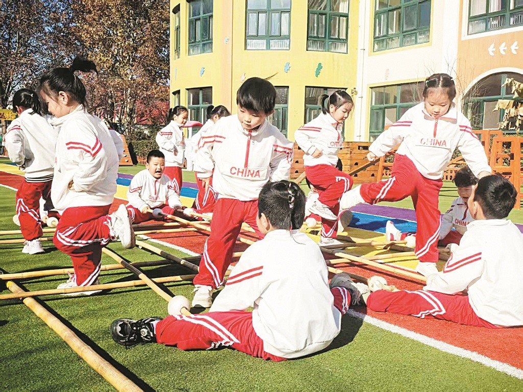 诸城市昌城镇中心幼儿园作为全市运动促进健康项目试点园,深耕传统体育,将跳竹竿、打腰鼓、踩高跷、跳皮筋等民俗体育项目融入日常教学。跳竹竿锻炼幼儿身体协调性与反应力,打腰鼓增强肢体力量、传递文化魅力,踩高跷提升平衡能力,跳皮筋激发团队协作意识。幼儿园坚持以传统体育为桥梁,让运动赋能健康,为幼儿快乐成长筑牢体魄根基。