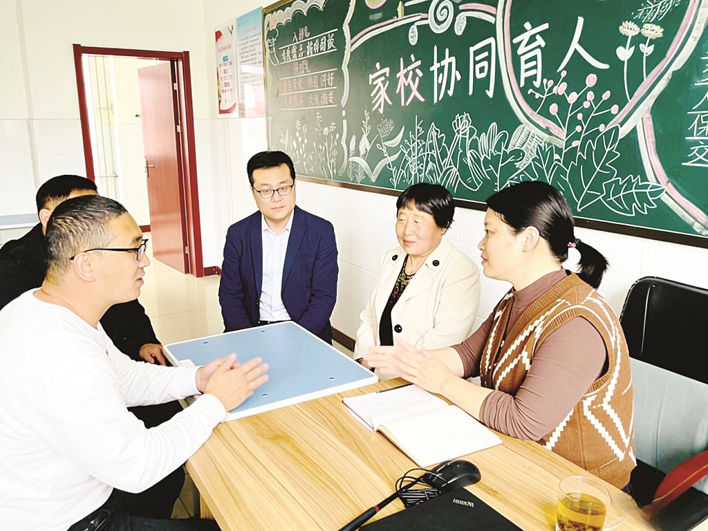 宁阳县中京实验学校近日设立“家长夜校”。每天下午4点半左右,家长持证入校,或参与“家长夜校”,或参加家长沙龙,或在图书馆进行亲子阅读。图为家长们在“家长夜校”里交流育儿经验。