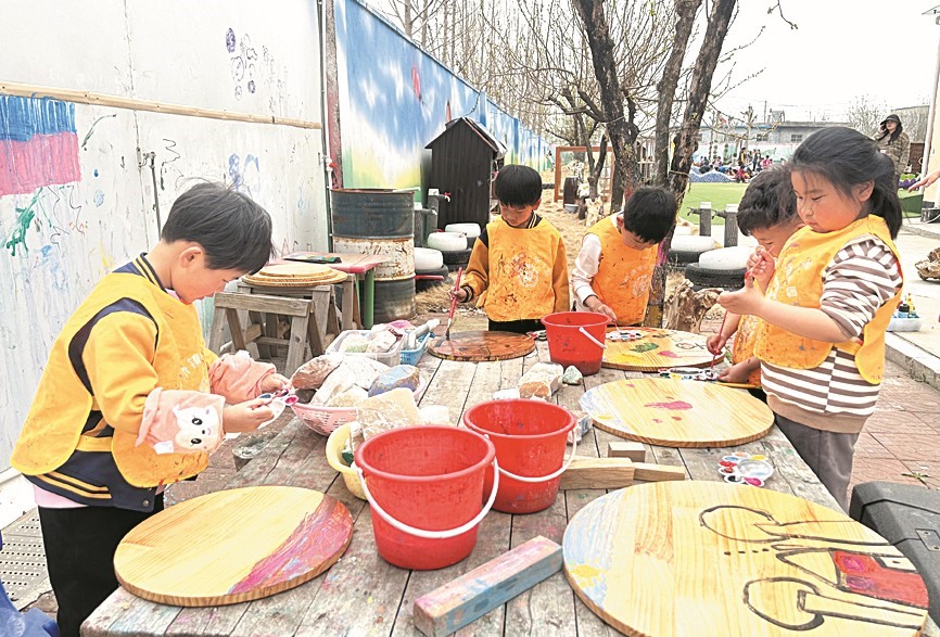 沉浸在快乐涂鸦中的幼儿们 崔凤真/摄