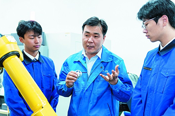 “弘扬工匠精神,培育大国工匠。我在课堂上列举我国大国工匠火箭‘心脏’焊接人高凤林、两丝钳工顾秋亮等人的先进事迹,引领学生学习他们身上那种坚定、踏实、极致、专注、精益求精的敬业精神,以此激发和带动学生的学习兴趣。”山东工程职业技术大学智能制造学院教师郑健说。