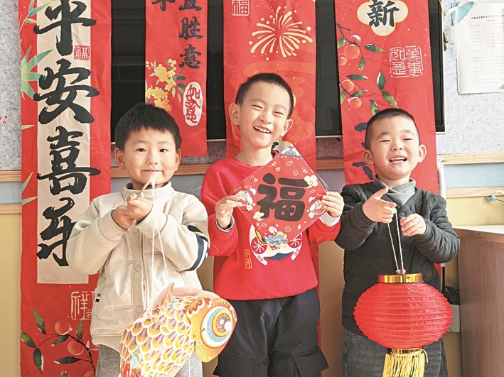 五莲县洪凝街道中心幼儿园将庆元旦活动融入传统文化教育,开启一场“小小迎新家”元旦喜乐会。幼儿亲手制作“福”字、灯笼等新年装饰,用巧手装点班级、用笑容传递年味。(毕晓娜)