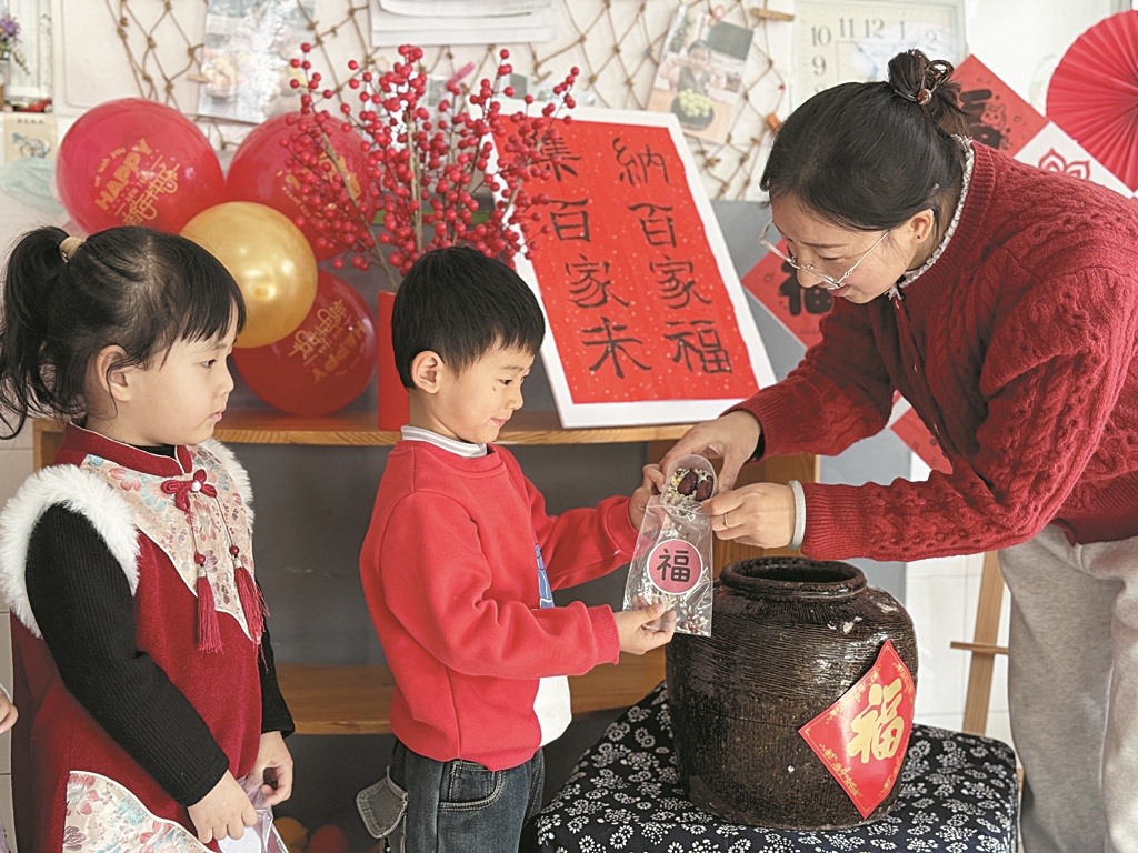 为传承中华传统民俗文化,莘县实验幼儿园开展“集百家米,纳百家福”主题活动。幼儿在家长的陪伴下,带来自家的一小捧米粮。活动最后,幼儿园将收集到的百家米放到福袋里,让幼儿带回家,让他们在舌尖的暖意中感受传统文化的魅力与“百家共情、福气共享”的温暖氛围。(刘丽雯 王庆庆)