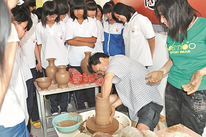 该校引进刘浩、李闻磊、刘璇、张辉等传统工艺大师与教师共同制定培养目标,共同研究课程体系,把黑陶制作过程转化为学校课程,先后编写了《龙山黑陶工艺传承》《黑陶烧制》《龙山黑陶工艺传承与实践》等3本校本教材。同时,建成设计室、创作室、展示室“三位一体”的校内龙山黑陶名师工作室,开设了黑陶艺术设计、黑陶烧制、黑陶营销等选修课,实施行动导向教学,引导学生主动参与制陶过程,深刻体验技术技艺的精髓和内涵。成立了兴趣社团,越来越多的学生喜欢黑陶、了解黑陶、走近黑陶。每年有200 多名学生参加黑陶兴趣小组,参与黑陶设计与制作,初步掌握了选料、制泥、成形、雕刻、干燥、烧制等设计和制作工艺,使龙山黑陶制作精髓得以传承。