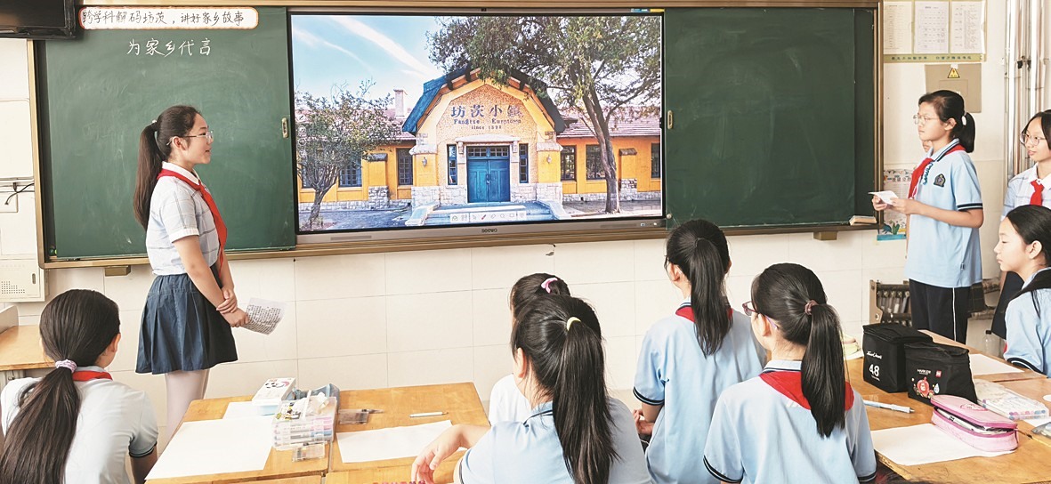 透过百年追忆,学生知道了家乡坊子的煤曾点亮胶济铁路,更明白了“落后就要挨打”的道理。那些百年前的老建筑,镌刻着家乡的历史记忆;文旅小镇独有的文化魅力,滋养出他们奔向未来的自信和底气。美术教师王跃玲说:“德式建筑的窗户分割比例很特别,写生时感觉像在解一道几何题,这就是独特的‘坊茨味儿’!”学生通过这种“坊茨味儿”的表达,给人留下深刻印象。在“坊茨文化宣讲大赛”上,五年级(3)班学生杨柳茜动情地说:“从前,我觉得家乡历史离我很远;现在,我知道每块砖都在诉说。长大后,我要做家乡的建设者,让更多人了解坊茨的独特。”