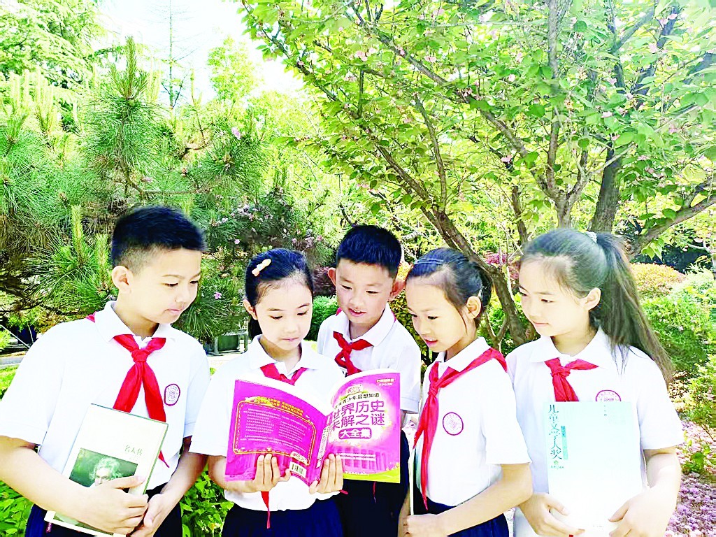 近日,济南市行知小学开展了“行知少年好读书”活动。课间,三五成群的学生在花树掩映下快乐阅读,成为校园里最美的风景。