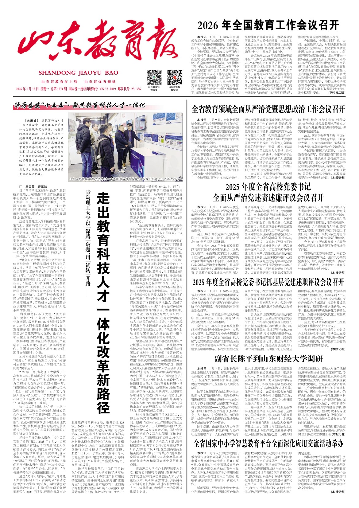 山东教育报要闻 康复大学:打开新型研究型大学的崭新格局 教育部认定2025年第一批义务教育优质均衡发展县  我省23个县(市、区)成功入选 我省开展“职链齐鲁”职业教育赋能标志性产业链活动 东营市举办学生数字素养提升实践活动  暨人工智能教育辅导教师培训活动 大中小学思政课一体化改革还需持续发力