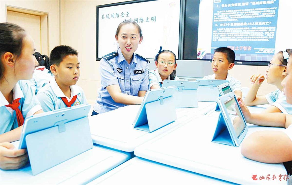 近期,青岛市中小学开展了首次“网警进校园”活动。通过开设媒介素养课程、家校联手等,教师和家长教给学生辨别网络信息真伪的方法,让他们了解识别网络欺诈行为的方法,学会健康上网。图为青岛市公安局网警支队的民警正在指导青岛嘉定路小学五年级(3)班的学生安全上网。(孙军 摄影报道)