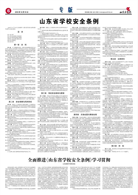 二是扎实做好《条例》的学习宣传工作。全面落实“谁执法谁普法”普法责任制,积极构建《条例》普法的大格局。省教育厅将会同有关部门及时开展《条例》的学习培训工作,组织编撰《条例》释义,制作培训教材光盘,通过专题培训班、专题报告会、视频教学等形式,使全省教育行政干部、校长和教师准确理解、全面把握、正确执行《条例》的各项规定,牢固树立依法治教、依法治校的观念,依法履行职责,大力推进提高学校安全工作水平的各项工作。为进一步加大宣传力度,各级教育行政部门、各级各类学校将认真安排部署,加强组织协调,采取多种形式,开展系列宣传活动,使《条例》家喻户晓,深入人心,在全社会营造有利于增强学校安全工作的浓郁舆论氛围,引导全社会和广大学生家长了解、支持、参与学校安全工作,形成学校安全工作的合力。同时,我们将充分发挥各类报刊、电台、电视台等大众传媒的作用,加强山东省教育厅官方网站、微博、微信公众号等新媒体的协同配合,坚持多渠道传播、多形态展现,形成宣传《条例》的网络矩阵和集群化效应,为《条例》的顺利实施打下坚实基础。