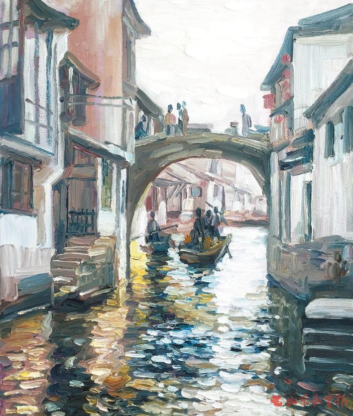 “如果你有一双善于发现的眼睛,从路边的一朵野花,就能看到美丽的天堂,你会感觉世界无处不美景;如果你拥有一颗善于发现美的心灵,从海边的一粒沙子,就能领悟奇妙世界,你会发现周围的世界是那么具有诗情画意。” 我很喜欢英国浪漫主义诗人威廉•布莱克这段优美的文字。关于油画风景的语言风格,从绘画者所表现的形象处理方式上分,大致可以分为具象语言风格、意象语言风格和抽象语言风格。在油画中不论是写实性的作品还是写意性的作品,造型自身的语言价值直接体现了艺术家的追求与思维方式,同时也鲜明地表现出画家的个性与艺术语汇。绘画的表现风格给观赏者留下了深刻印象,以致我们在欣赏作品时不必去探究作品的内容究竟是什么,而往往被它单纯、鲜明、直觉的艺术语言表达风格感动,这充分说明了油画艺术语言风格对作品感染力的影响。本期江南系列风景写生作品通过意境表达情感,展现了中国意象油画语言的独特风格。