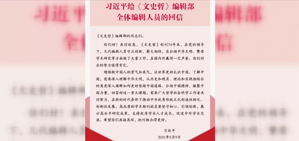 2021年5月9日,中共中央总书记、国家主席、中央军委主席习近平给《文史哲》编辑部全体编辑人员回信,对《文史哲》创刊70年来的工作成绩给予高度肯定,对继续办好哲学社会科学期刊提出殷切期望。习近平总书记提出,要在新的时代条件下推动中华优秀传统文化创造性转化、创新性发展,回答好深入理解中华文明,从历史和现实、理论和实践相结合的角度深入阐释如何更好坚持中国道路、弘扬中国精神、凝聚中国力量这一重大课题。这不仅是对一本学术期刊的激励与指示,而且是对整个哲学社会科学界的鞭策与嘱托。(苗立群)