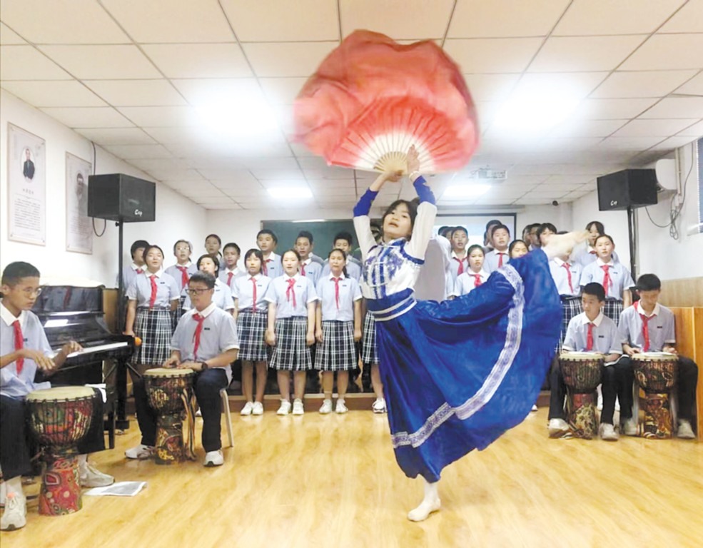 日前,济南燕新中学举办年度文化艺术节,既展示了学生的艺术潜能,又检阅了师生的精神风貌。图为该校七年级(5)班学生在艺术节上表演节目。