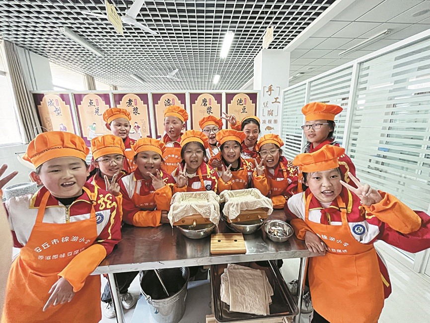 “让学生在真实情境中真劳动,‘三新’课程才能产生真实效。基于城区学生的日常生活,在设置劳动任务时,我们链接学生生活,让劳动在真实的情境中发生。”李玉红介绍,真实的情境中劳动,方能领略劳动中蕴含的智慧和技艺。针对五年级“用豆腐做菜”这个任务,教师将其进一步细化为用豆腐做凉菜、热菜、汤、豆腐干、豆腐乳等。在劳动的过程中,有的学生深切体会到每一项成果背后的艰辛与不易,有的建立起与家人更深厚的情感连接,有的突破了自我能力,为“三高”病人、减肥人群提出了合理饮食建议。只有让学生在十分熟悉的生活情境中“真劳动”,才能发挥才智、增长技能,体会劳动的价值与快乐。