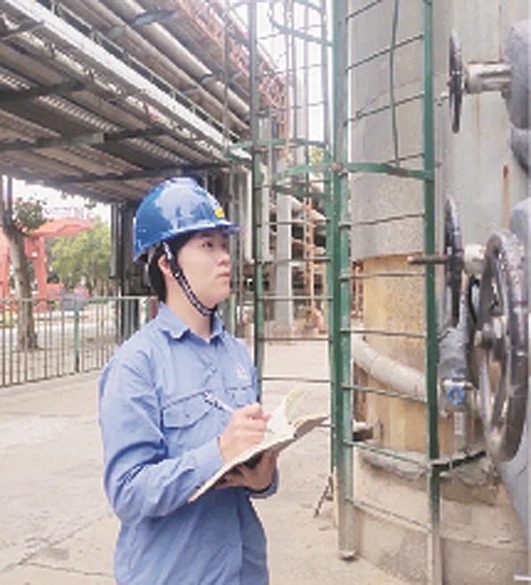 毕业生刘婧在中石化济南炼化分公司工作现场