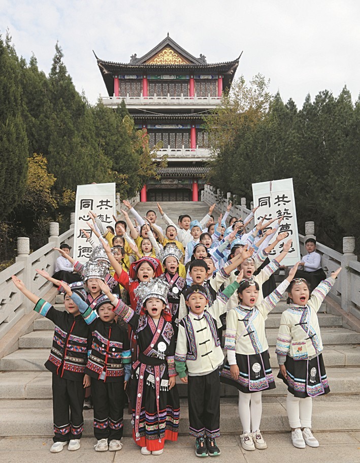 山顶平台是学生展现创意与魅力的璀璨舞台。他们身着独具特色的民族服饰,以精湛的表演,勾勒出一幅幅绚丽多彩的民族画卷。那悠扬的旋律、曼妙的音符,恰似山间潺潺流淌的清泉,滋润着每个人的心灵,承载着新时代少年的担当。