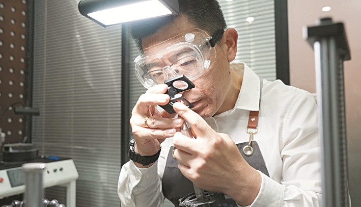 林斌深耕珠宝职业教育领域,精通7种宝石琢磨工艺,拥有发明专利1项、外观设计专利6项。其首创融合贝雕与螺钿技艺的珠宝饰品,推动传统工艺焕发新生;主持制定国家级贝雕行业标准,填补产业技术空白。以赛促教、以赛促学是林斌践行人才强国战略的生动实践。作为国家级优秀教练,他指导学生连续3年包揽全国宝石琢磨、钻石分级赛项共计6枚金牌,实现“三连冠”,牵头组织多项国家、省、市级赛事,带领的团队获评“青岛市工人先锋号”荣誉称号。