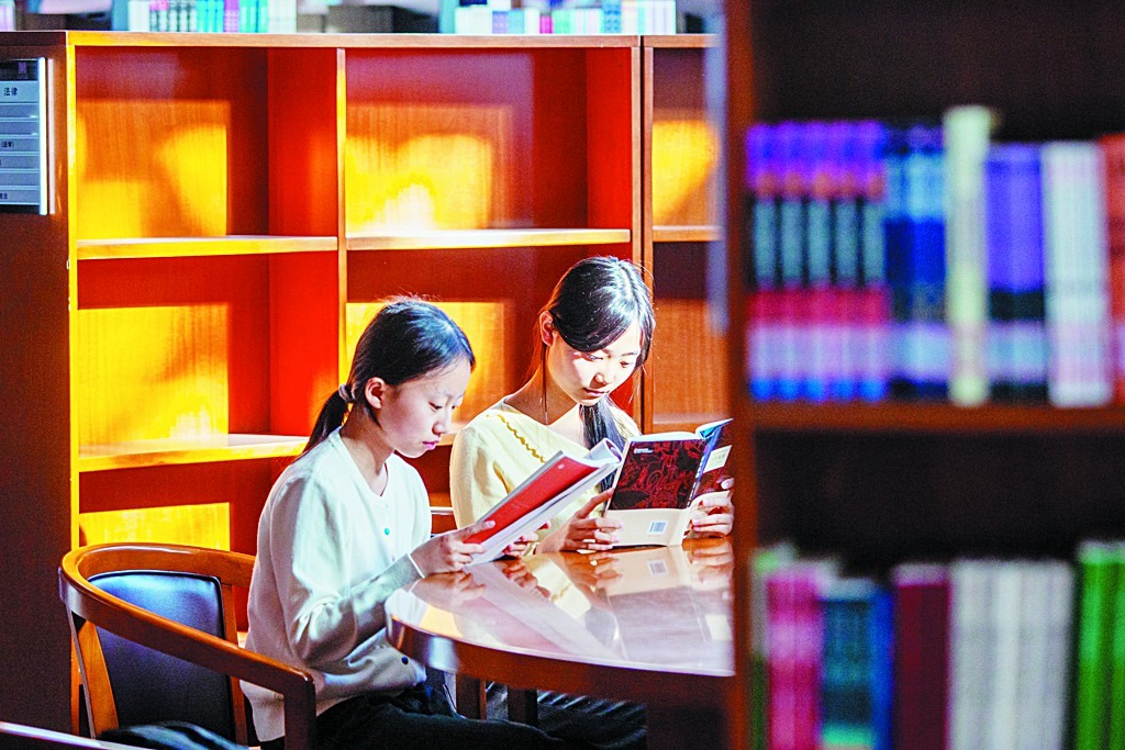假期里,图书馆成为众多学子的好去处。书架旁,他们静心捧读,遨游书海、品味书香,于静谧的时光里享受假日的美好,感受读书带来的乐趣。图为两名学生在高青县图书馆里读书。