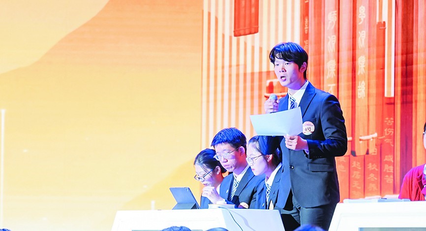 学生孔一帆和队友在全国《黄帝内经》知识大赛现场