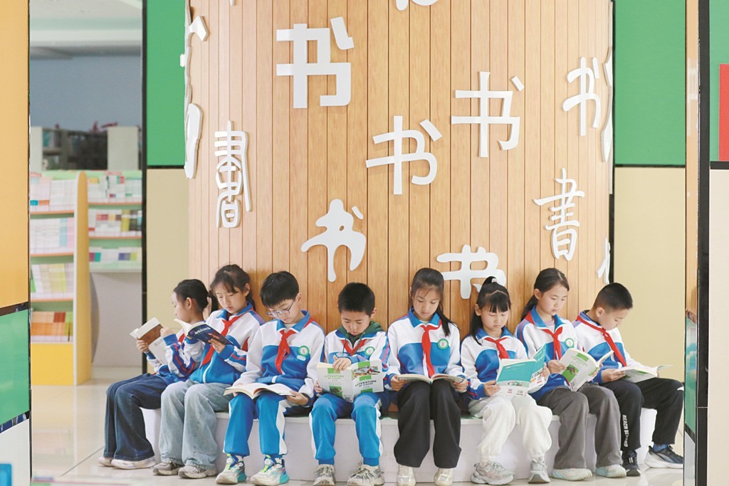 日,高密市恒涛实验小学开展世界读书日主题活动,学生在阅览室、图书角、阅读课上阅读书籍,品味书香,享受阅读带来的快乐。图为学生在阅览室读书。