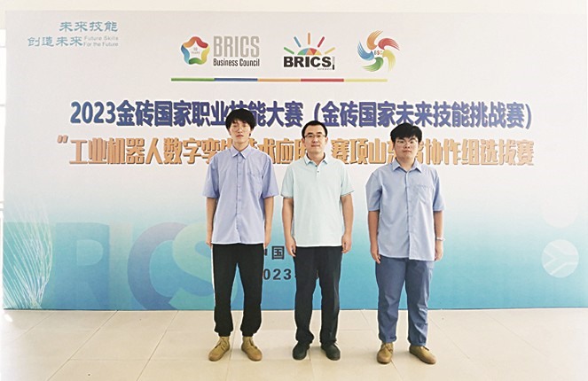 王宏甲(中)带领学生参加金砖国家职业技能大赛